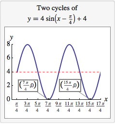 & y = 4 \sin\left(x – \frac{\pi}{4} \right) +4 \\