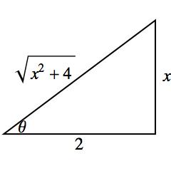 \sin \theta = \frac{x}{\sqrt{4+x^2}} \text{ and } \cos \theta = \frac{2}{\sqrt{4+x^2}}.