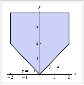 $$ D=\{(x,y)| \ |x|\le y, 0\le y\le4 \} $$