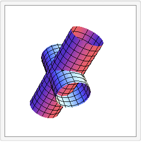 The equation \(x^2 + y^2 = 9r^2\) represents the cylinder with the \(z\)-axis as its center line and radius 3r. The equation \(y^2+z^2 = 9r^2\) is the cylinder with the \(x\)-axis as its center line and radius 3r.